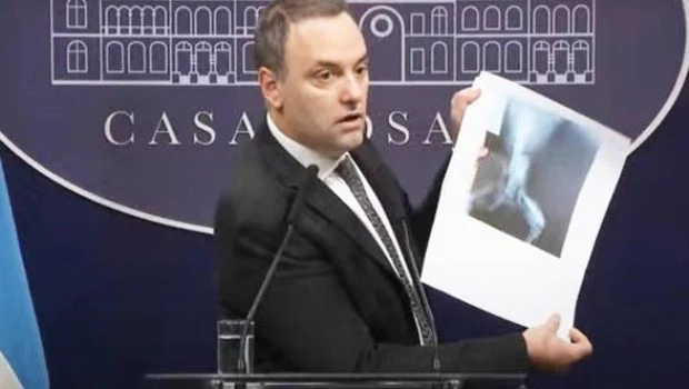 También hizo público el caso de la provincia de Chaco, donde una misma radiografía de hombro fue presentada como prueba en 150 pensiones por invalidez, mientras que en 2022 “un médico correntino de dudosa ética profesional adjuntó al certificado que presentó para la obtención de una pensión la radiografía de un perro”, material cuya copia el vocero compartió entre los periodistas presentes en la conferencia ya que en la imagen se puede ver la cola del perro.