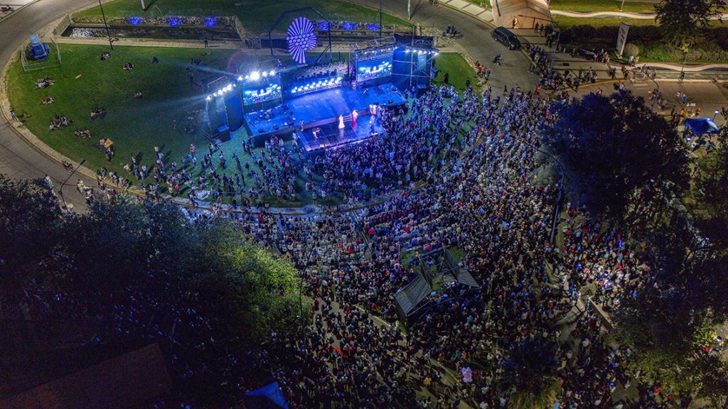 Las impactantes imágenes captadas por el dron reflejan no solo la cantidad de gente presente, sino también el fuerte sentido de pertenencia y celebración que se vivió, convertida por unos minutos en el epicentro del festejo vendimial sanrafaelino.