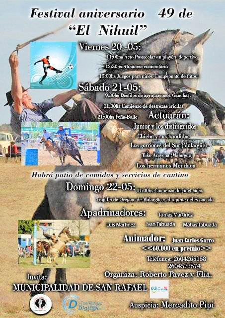 La comunidad del distrito de El Nihuil se prepara para el festejo de un nuevo aniversario y para celebrarlo están preparando diferentes actos que se realizarán entre el 20 y el 22 de mayo.