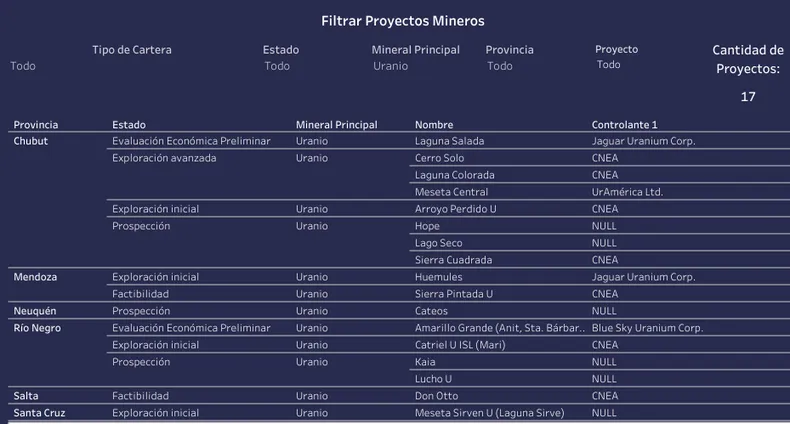 En paralelo, el vicepresidente de la Comisión Nacional de Energía Atómica (CNEA), Luis Rovere, puntualizó que hoy existen 17 iniciativas vinculadas a la minería de uranio en el país, llevadas adelante tanto por la propia CNEA como por empresas privadas.