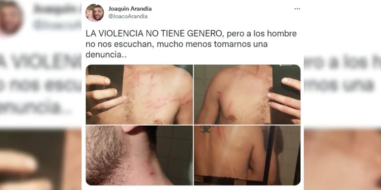 El usuario que posteó las imágenes en su perfil de Twitter ese llama Joaquín Arandia. Si bien subió las fotos donde se lo ve lastimado no aclaró quién fue la agresora ni cómo se produjeron. En este sentido, tampoco dio detalles sobre la fecha de dichas fotografías.