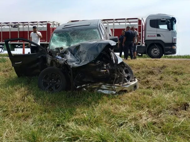 A las 12:30, la RAM de Michael Díaz impactó de frente el utilitario que manejaba tras una mala maniobra al cruzarse de carril en un intento de sobrepaso.