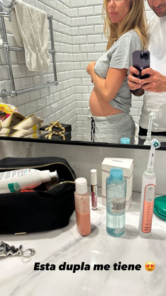 Más adelante, el marido de la modelo compartió otra historia con una selfie que sacó frente a un espejo con Nicole y escribió muy emocionado: «Esta dupla me tiene».