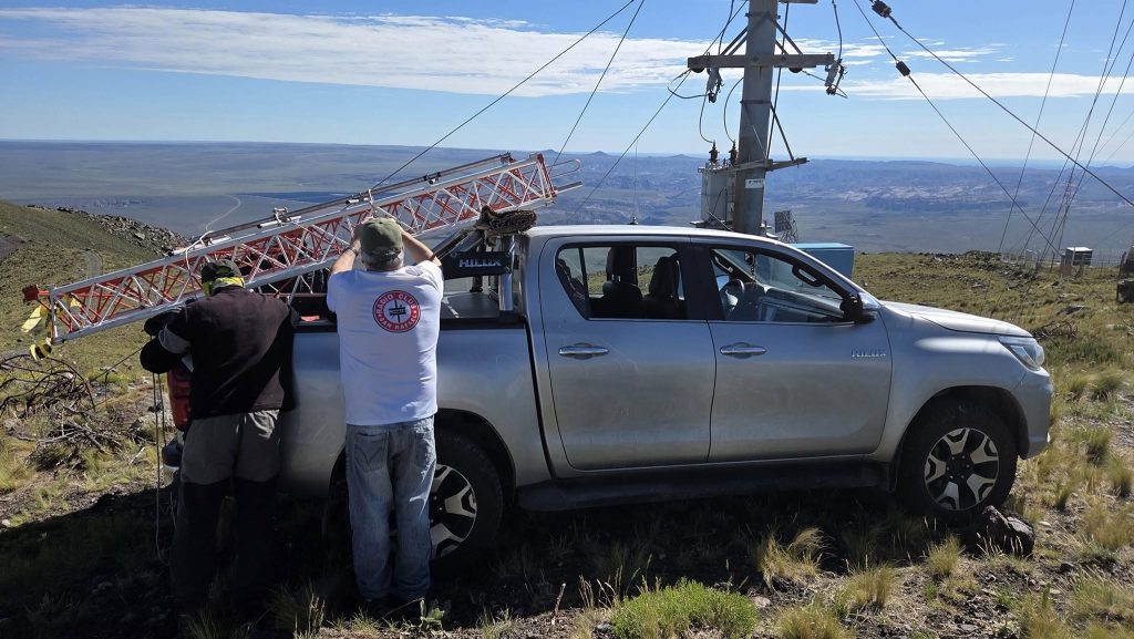 La tarea estuvo a cargo de los radioaficionados Pablo Moretti, Pablo Libossart, Osvaldo Tarántola y Tomás Pérez, quienes subieron hasta la cima para instalar nuevas antenas y equipos, realizando luego las pruebas técnicas correspondientes.