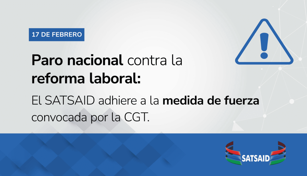 El SATSAID también informó que acompañará las medidas que la CGT establezca dentro del plan de lucha y confirmó su presencia en la conferencia de prensa convocada por la central obrera para el 18 de febrero a las 11 horas, donde se brindarán detalles de la medida.