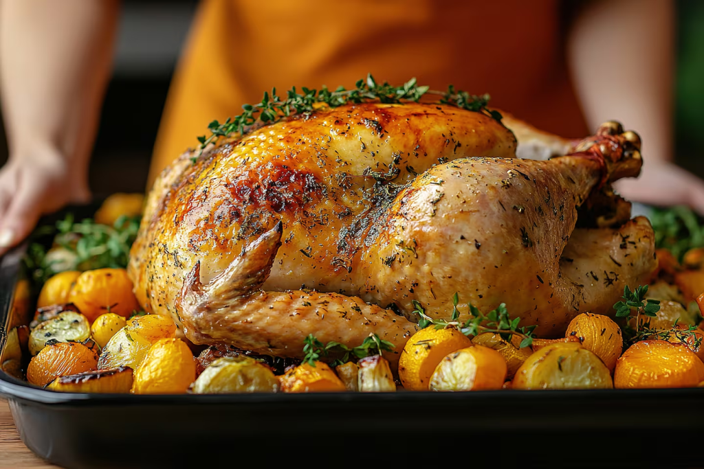 - Riego: Durante el horneado, riega el pollo con los jugos que suelta para mantenerlo húmedo y sabroso.