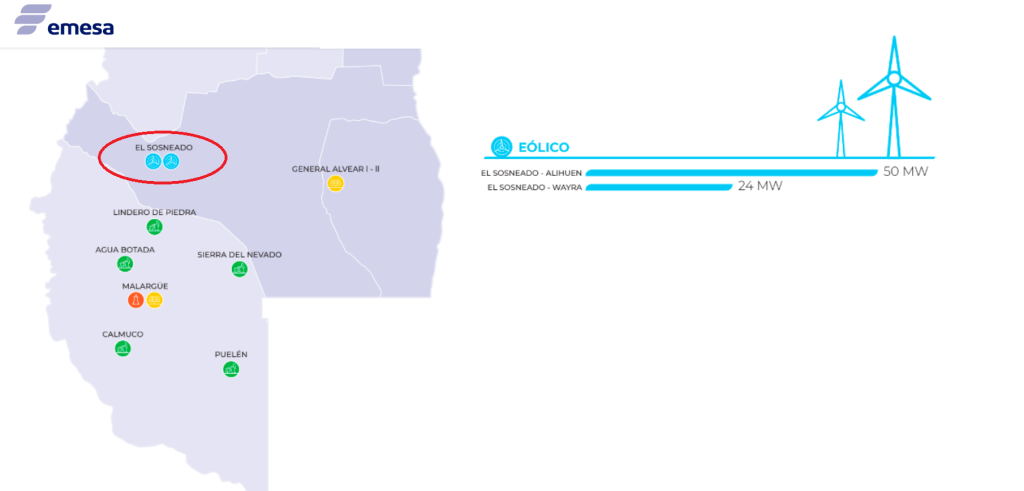 Nada de eso prosperó y ambos permanecen dentro de la cartera de EMESA como posibilidades para invertir. Pese a esto las oportunidades de Mendoza parecen limitadas por sus «horas viento» frente a otras locaciones más «eficientes» como destinos de la Patagonia e incluso localidades costeras como Bahía Blanca.