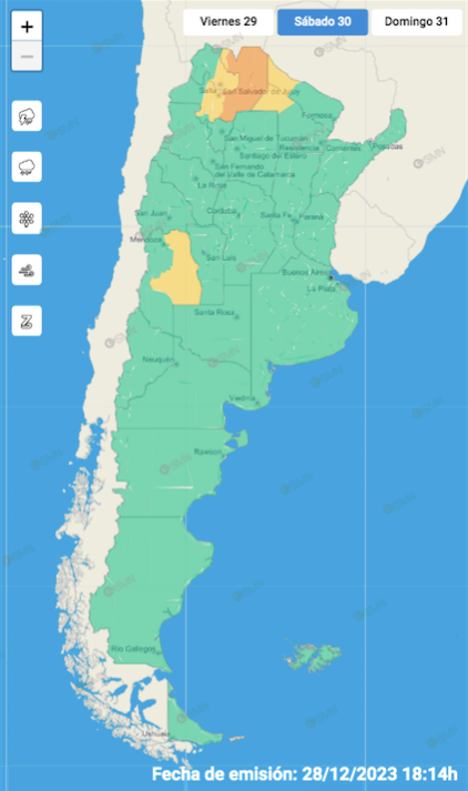 Además, el Servicio Meteorológico Nacional (SMN) emitió un alerta amarillo por tormentas aisladas, con posible caída de granizo. El fenómeno se registrará en Las Heras, La Paz, Lavalle, San Martín, Santa Rosa, General Alvear y zona baja de San Rafael.