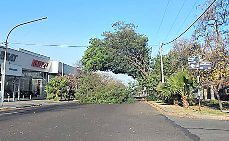 El funcionario recordó que el domingo “fue un día bastante movidito en cuanto a la presencia del viento Zonda que tuvimos en el departamento, con ráfagas de 90 kilómetros por hora y más, lo cual provocó alguna caída de ramas y forestales tanto en Ciudad como en distritos, y Defensa Civil tuvo alrededor de 23 intervenciones”. Específicamente en Ciudad hubo caída de ramas de tamaño importante en barrio Unimev, Pueblo Diamante, sobre calle Cabildo y algunos otros sectores, mientras que los forestales cayeron especialmente en el distrito de Cuadro Nacional, donde además de Defensa Civil, trabajó el delegado municipal junto a vecinos que no dudaron en colaborar. Algo similar ocurrió en la Villa 25 de Mayo, Rama Caída y otros distritos. “Son forestales añosos que se caen o que están perjudicados por algunos incendios intencionales”, lamentó. Ayer, empleados del organismo dirigido por Vergani llevaron a cabo relevamientos para cortar aquellos árboles que permanecen en riesgo de caída.