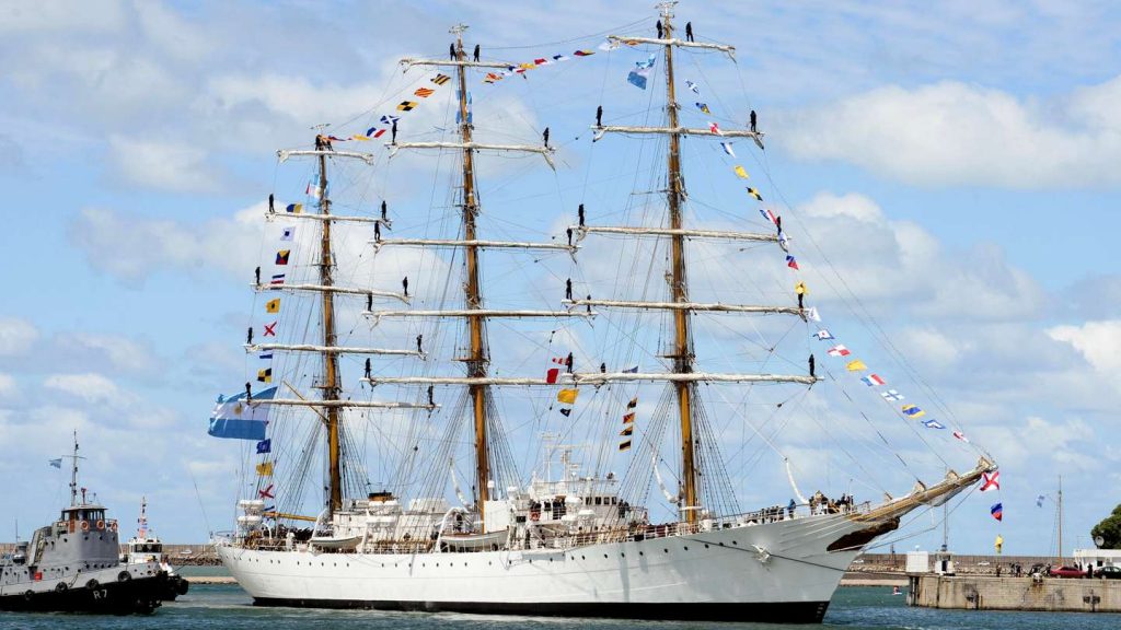 La fragata ARA Libertad zarpó a fines de julio de Buenos Aires y lleva adelante su viaje de instrucción número 49 organizado por el Ministerio de Defensa. La tripulación al mando de su Comandante, Capitán de Navío Osvaldo Raúl Chiñi, está compuesta por 27 oficiales, 58 guardiamarinas en comisión y 180 suboficiales. Valparaíso es el primer puerto internacional en el itinerario.