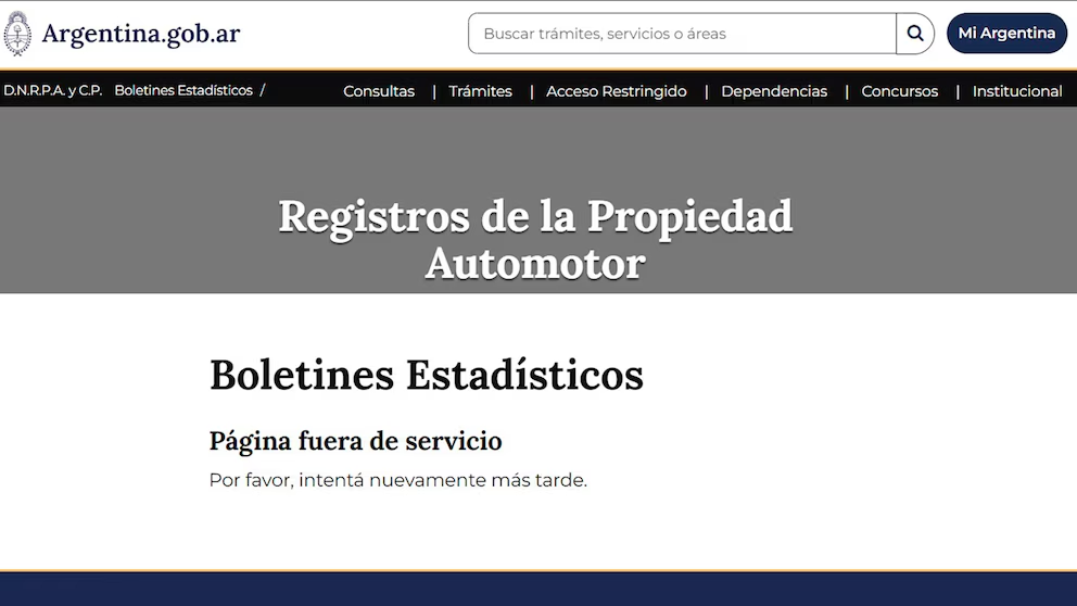 Este lunes a la mañana, en un apartado en el que se podían ver los patentamientos por jurisdicción, la suma total de febrero llegaba a casi 35.000 unidades. Desde el mediodía esa sección está fuera de línea y desde la DNRPA no hay respuesta ante la consulta de Infobae.