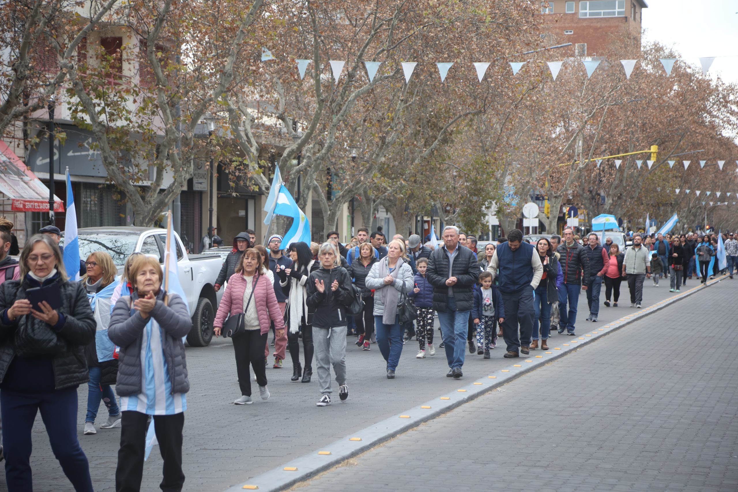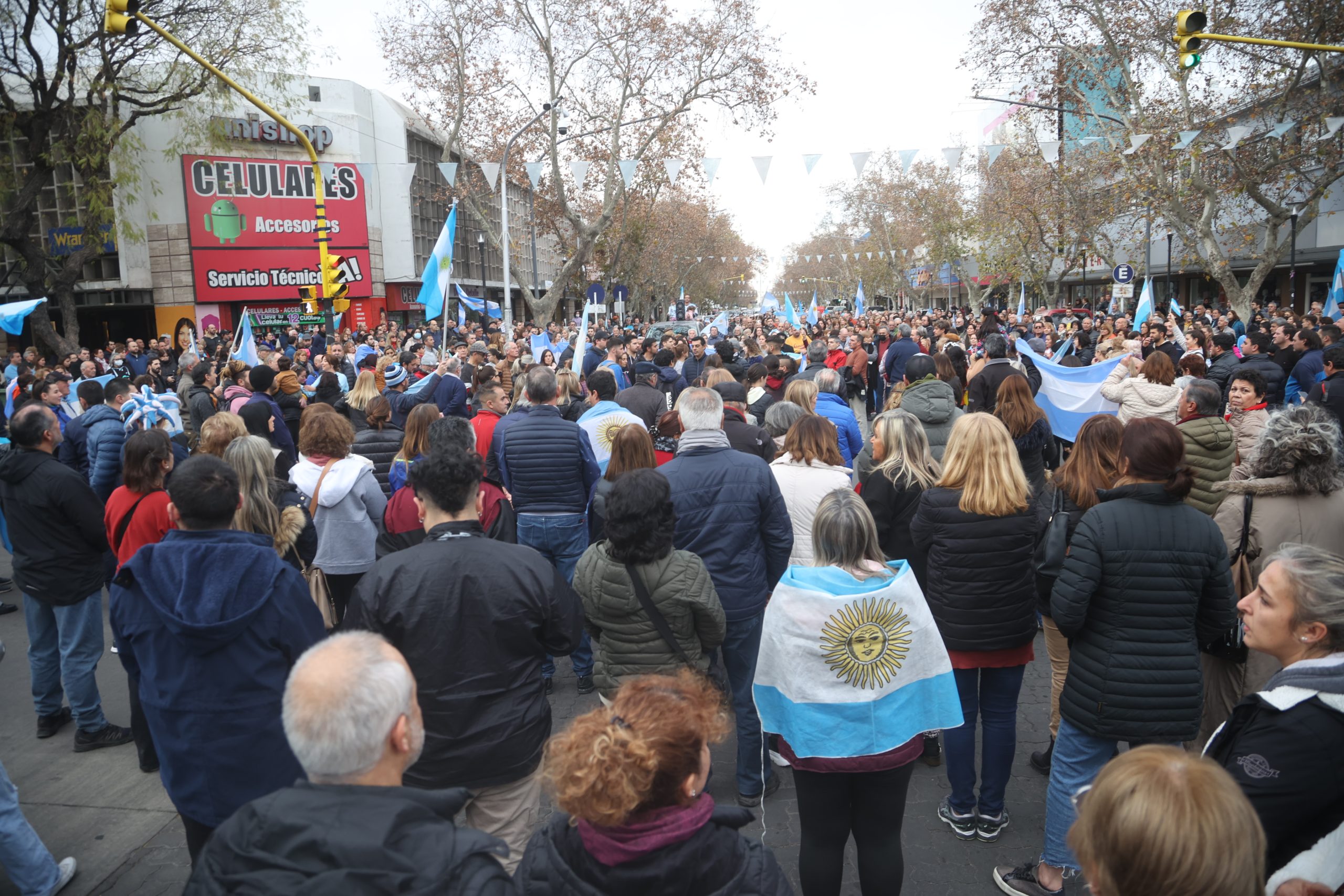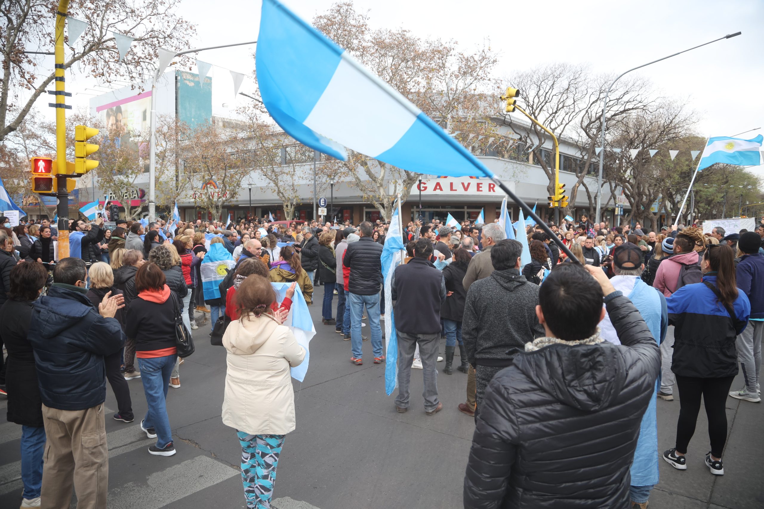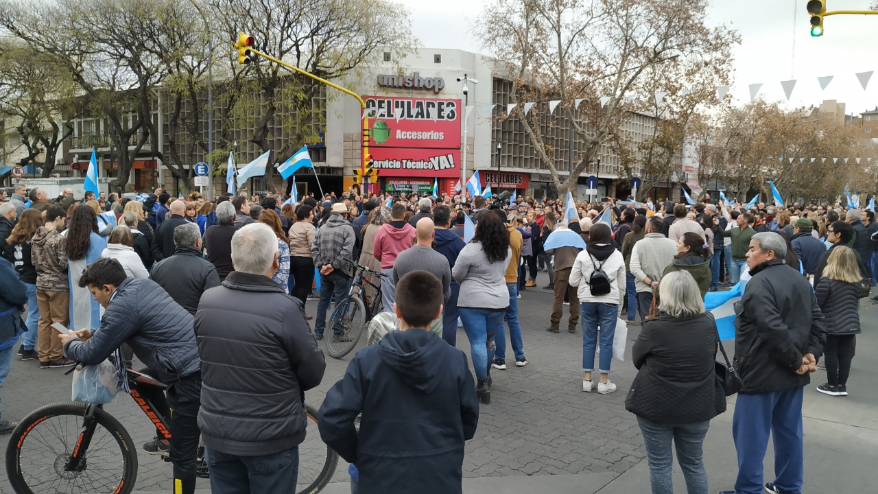 A metros de él, otro vecino, Claudio Papagni señaló que lo que lo hacía estar allí era “un poco el cansancio de seguir con políticas retrógradas, donde no se llega a nada, a ningún buen puerto”. “Seguimos igual que hace más de 70 años y queremos ver que el cambio empiece porque es el pueblo el que ya está cansado de seguir con todas estas cosas que, en definitiva, no benefician a nadie más que los que ya sabemos”, agregó. Se mostró satisfecho además, porque no hubo distinción de partidos políticos, sino que el que se acercó al lugar fue “el pueblo en su máxima expresión”. “No hay piedras, no hay gritos, no hay rotura de vidrieras, no hay nada de eso. Hay gente que vino a manifestarse porque está cansada de que la plata no le alcance para llegar a fin de mes, y de ver cómo están degradando nuestro país que es tan rico”, aseguró.