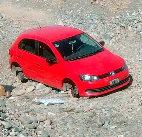 Ante ello, las autoridades policiales montaron diversos operativos para dar con el rodado y con los delincuentes. En esa instancia, cerca de las 13 del jueves, el Gol fue encontrado en una arenera de la Isla del Río Diamante. El vehículo no mostraba signos de daños considerables pero le faltaban las ruedas.