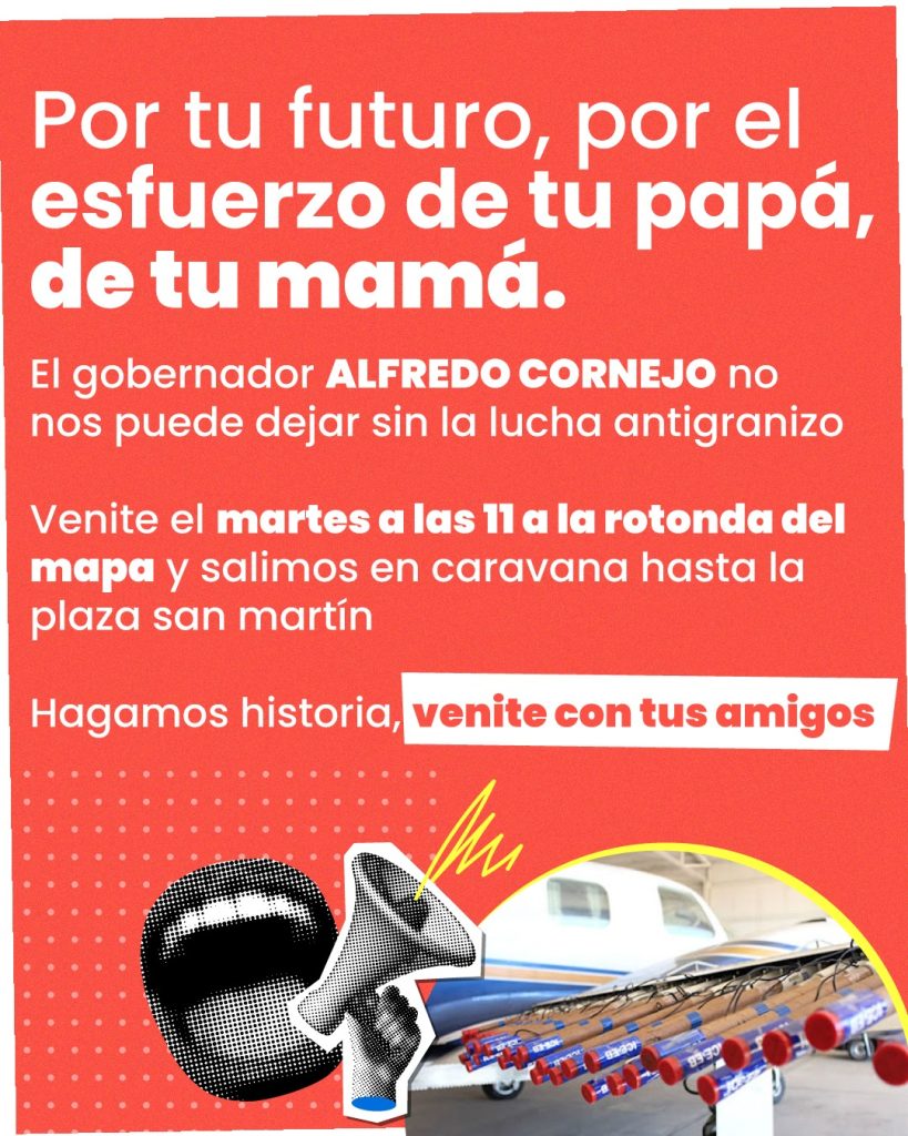 Un tercero marca: “por tu futuro, por el esfuerzo de tu papá y tu mamá. No nos pueden dejar sin Lucha Antigranizo”.