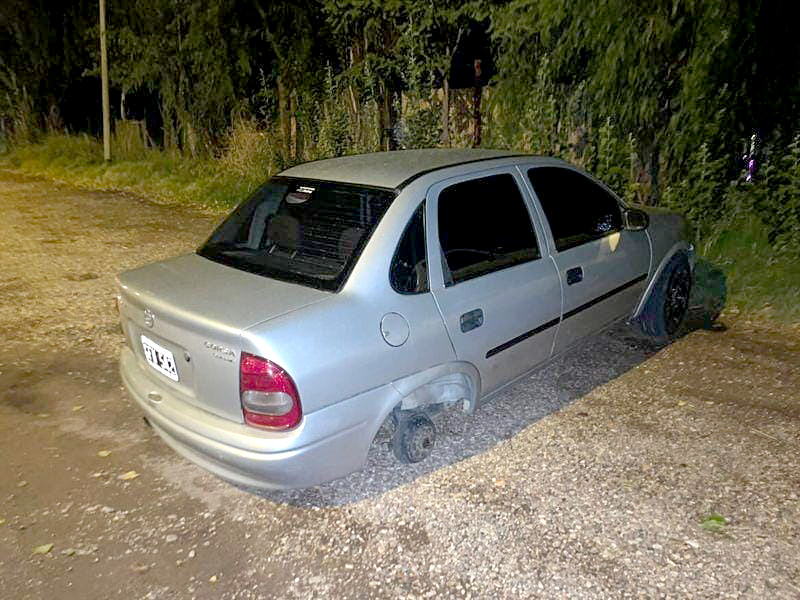 La denuncia se radicó pasadas las 4 del domingo, cuando el muchacho se retiraba del boliche y comprobó que a su Volkswagen Gol –que había dejado estacionado en la esquina de ruta 143 y El Chañaral- le faltaban dos de sus ruedas.