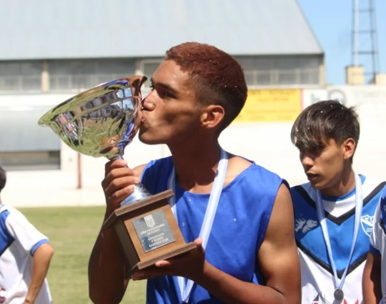 Rodrigo vive en Cuadro Nacional, estudia Educación Física en el IES Jorge Coll, juega al fútbol en el club del distrito y entrena a la séptima división junto a su papá.