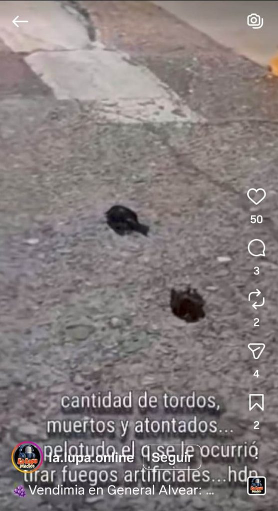 El fenómeno, que fue captado por los asistentes al evento, mostró una alfombra de aves muertas y heridas en pleno centro alvearense. Según especialistas, el estruendo provocado por los fuegos de artificio generó un estado de pánico y desorientación en los pájaros que pernoctaban en la arboleda de la plaza, provocando choques entre los ejemplares, colisiones contra estructuras y paros cardíacos por el estrés sonoro.
