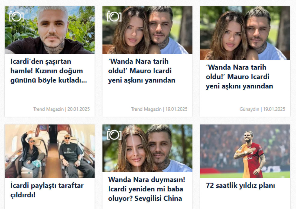 Luego de que la escandalosa separación entre Wanda e Icardi se hiciera eco a nivel mundial, uno de los más importantes portales de espectáculos de Turquía, el Sabah, tituló: “Wanda Nara es historia: Mauro Icardi no se separa nunca de su nuevo amor”.