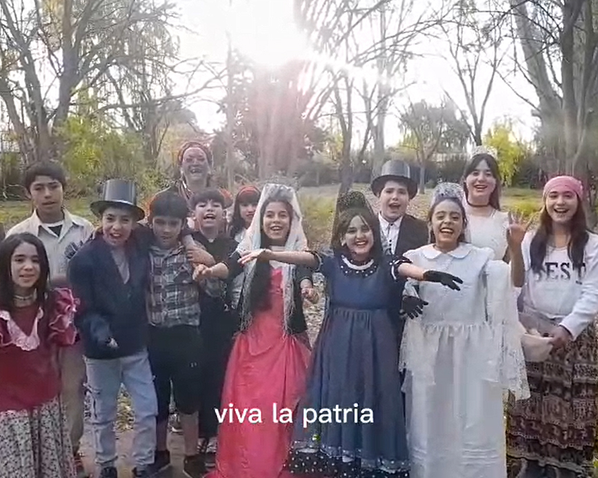 Ante este panorama, surgió una idea creativa y movilizadora: realizar un video con los propios alumnos, apelando a una historia original que enlaza la actualidad con el pasado histórico del país. “Se nos ocurrió hacer un video y qué mejor que hacerlo en referencia al 25 de Mayo, todo coincidió. Lo propusimos, a los chicos les encantó la idea. A ellos les encanta actuar y salir en los actos, así que pusimos manos a la obra y salió lo que ustedes pudieron apreciar estos días”, explicó.