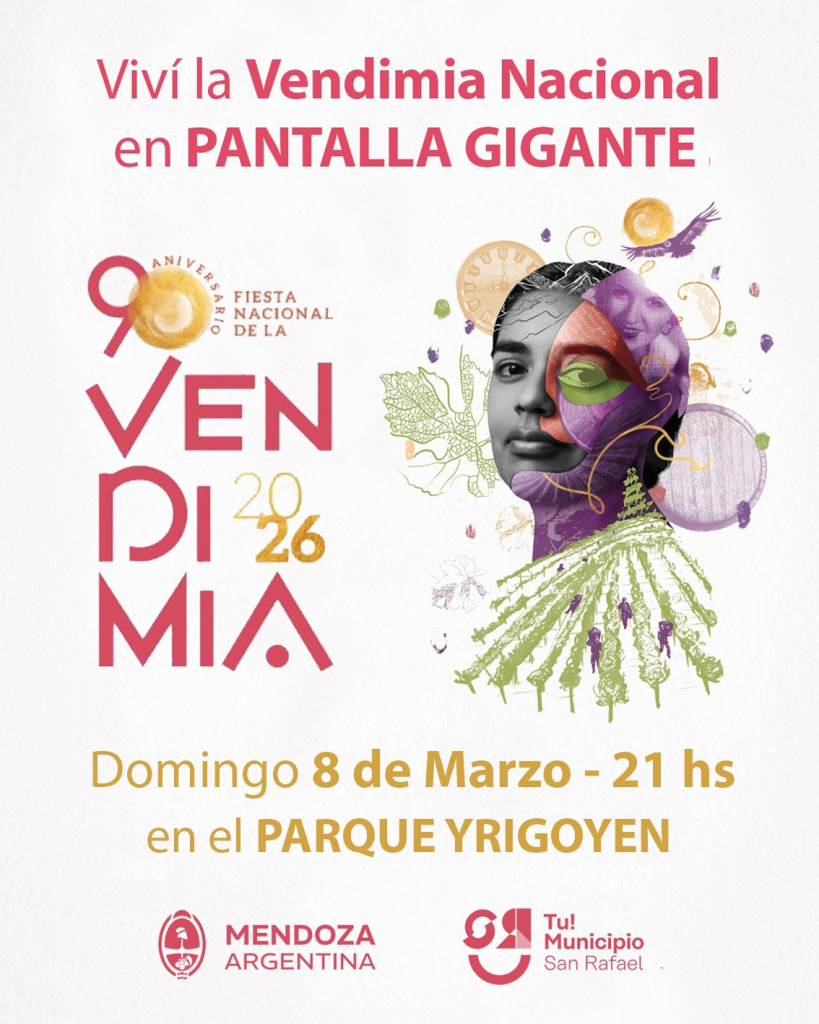Este domingo 9 de marzo, el Municipio de San Rafael instalará una pantalla gigante en el Parque Yrigoyen para que sanrafaelinos y turistas puedan seguir la celebración de la Fiesta Nacional de la Vendimia y acompañar la participación de nuestra soberana, Azul Antolínez.