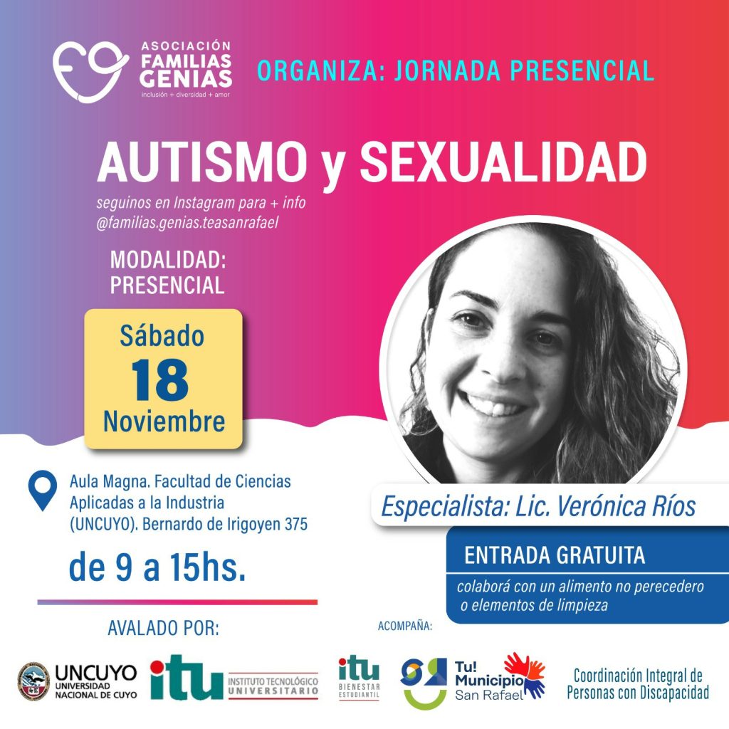 Desde la asociación “Familias genias” están organizando para el próximo sábado una jornada donde el tema a tratar será “Autismo y sexualidad”. Una de las responsables, Alejandra Vara, brindó algunos detalles al respecto, en diálogo con FM Vos (94.5) y con Diario San Rafael.