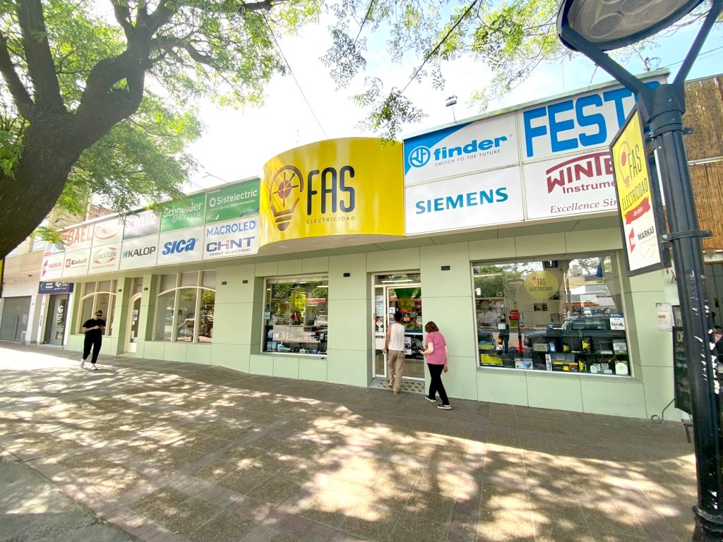 FAS Electricidad siempre ha estado en el mismo lugar, más allá de que en la actualidad ocupa dos locales adyacentes de aquel primer edificio, donde trabaja en horario corrido de 8 a 20 (con dos turnos de personal).