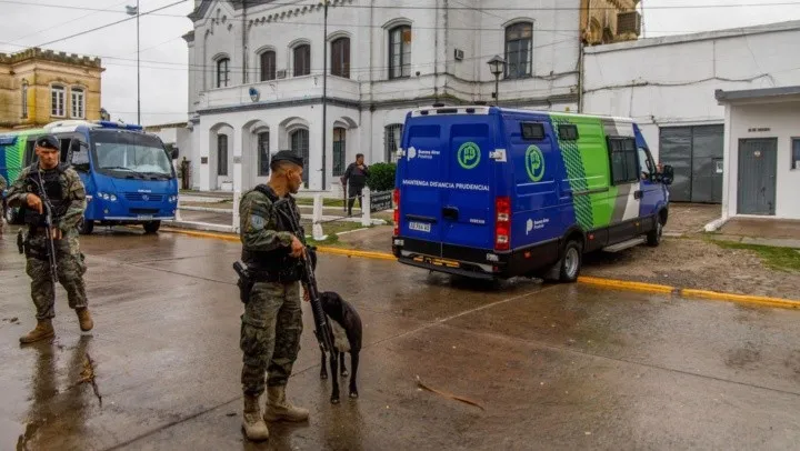 Dos móviles del Servicio Penitenciario Bonaerense trasladaron a Máximo Thomsen (23), Enzo Comelli (22), Matías Benicelli (23), Blas Cinalli (21), Ayrton Viollaz (23), y Luciano (21), Ciro (22) y Lucas Pertossi (23) desde la Unidad 6 de Dolores hacia el Palacio de Tribunales donde el Tribunal Oral en lo Criminal 1 de Dolores desarrollará el proceso judicial a lo largo de las próximas cuatro semanas.