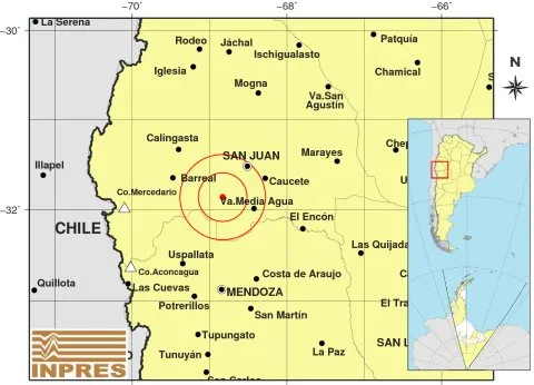 El epicentro fue localizado apenas al oeste de Media Agua, muy cerca del límite con Mendoza.