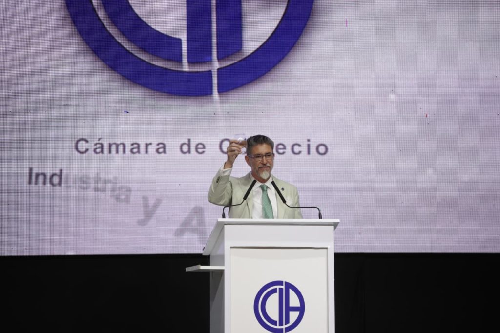La apertura de los discursos del Almuerzo de las Fuerzas Vivas estuvo a cargo del presidente de la Cámara de Comercio, Gabriel Brega.