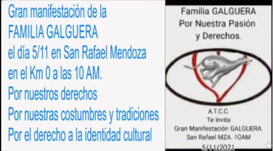 En este marco a nivel local familias galgueras están preparando una manifestación en el Kilómetro Cero.
