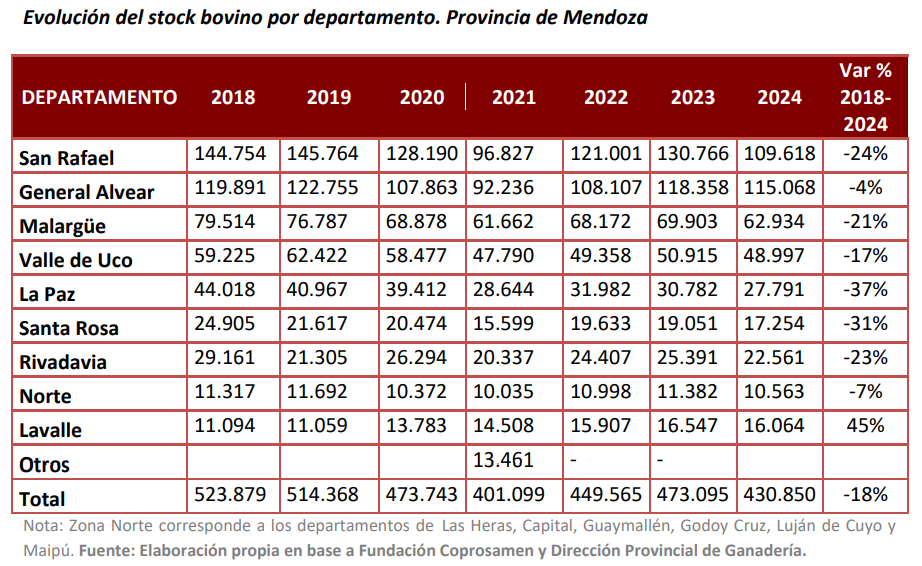 En la actualidad, la provincia de Mendoza concentra 473.095 cabezas de ganado distribuidas entre 3.851 productores y 2.350 establecimientos ganaderos.