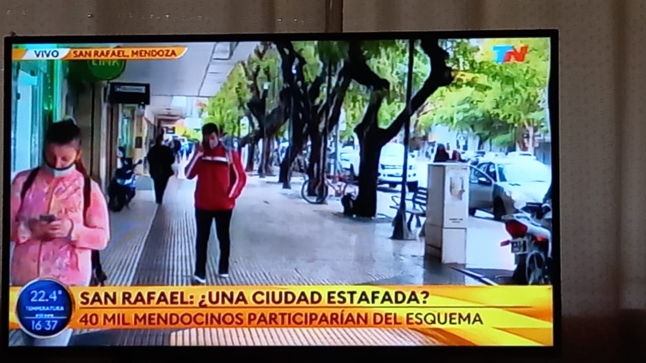Asimismo, TN transmitió un reportaje en el que dejaron ver el siguiente mensaje: “San Rafael: ¿una ciudad estafada? 40 mil mendocinos participarían del esquema”.
