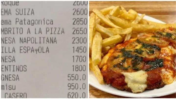 Gracias a la cuenta se puede saber que el «streamer» y su padre pidieron los siguientes platos: rabas, suprema «roque», suprema «suiza», suprema «patagónica», «matambrito» a la pizza, milanesa a la napolitana y sorrentinos, entre otras comidas y postres.