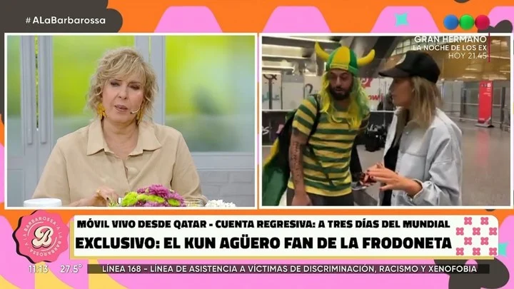 “No, vos sos brasilero”, le dijo Noelia, que seguía sin creerle. “No, no, no, cortale el rostro. Pero qué bien que habla”, dijo Barbarossa desde el piso, mientras que la movilera le pedía ver al entrevistado que le muestre el pasaporte. Sin embargo, el hincha mostraba los tatuajes que tenía en su pierna con las Copas del Mundo que ganó Brasil.