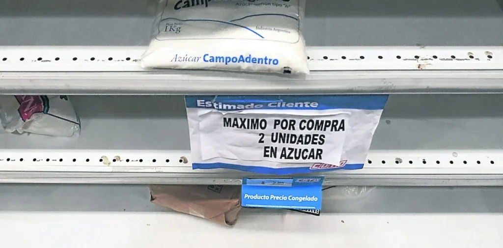Consultadas dos cadenas de supermercados líderes, coincidieron en destacar la falta de azúcar y de otros productos, como aceite, arroz, pastas, algunas legumbres, entre otros, mientras que en la cadena mayorista Masivos, de la zona de Mataderos, afirmaron que desde mayo vienen limitando la venta de azúcar, primero con tres bultos por persona y luego con uno.