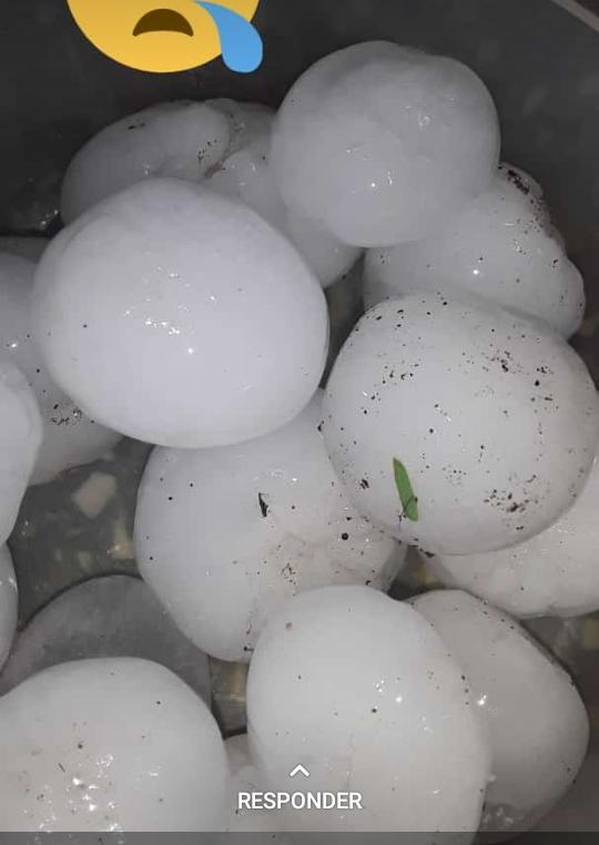 Como se observa en las fotos, el granizo alcanzó – en algunos casos – el tamaño de un huevo de gallina o una pelota de ping pong.