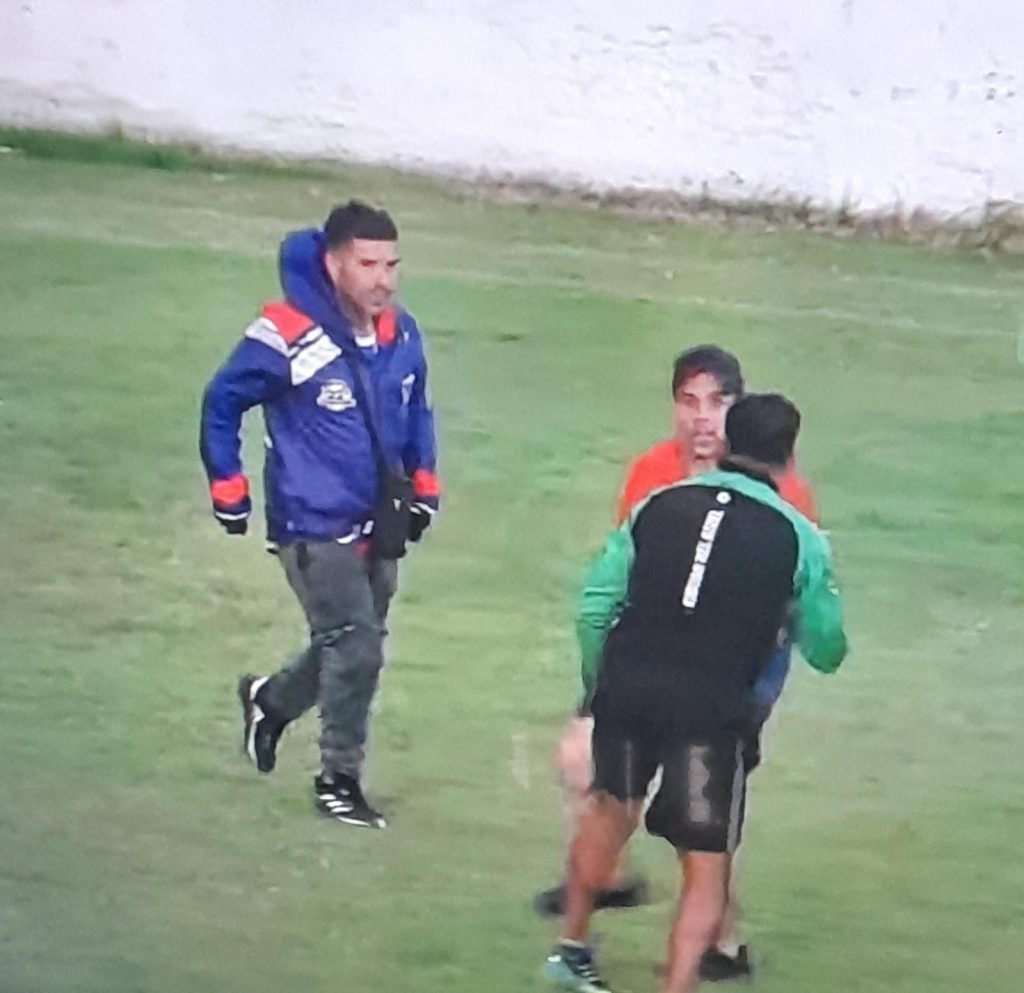 En esa instancia, pudo verse a un sujeto blandir un cuchillo tipo Tramontina con el que, en algún momento, intentó agredir a los asistentes de Rincón (ver foto). Tras varios minutos de refriega y varios capítulos en la pelea, los particulares se retiraron por sus propios medios de la cancha.