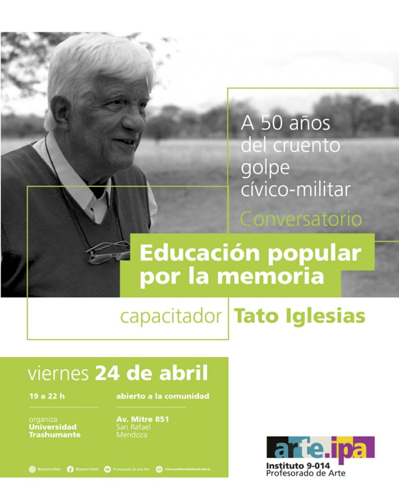 El evento, que tendrá lugar este viernes 24 de abril a partir de las 19 horas, se llevará a cabo en el salón de usos múltiples del Instituto de Profesorado de Artes (IPA). La propuesta incluirá la presencia de Roberto «Tato» Iglesias, sociólogo y docente, quien compartirá sus experiencias sobre la educación crítica y presentará su libro más reciente.