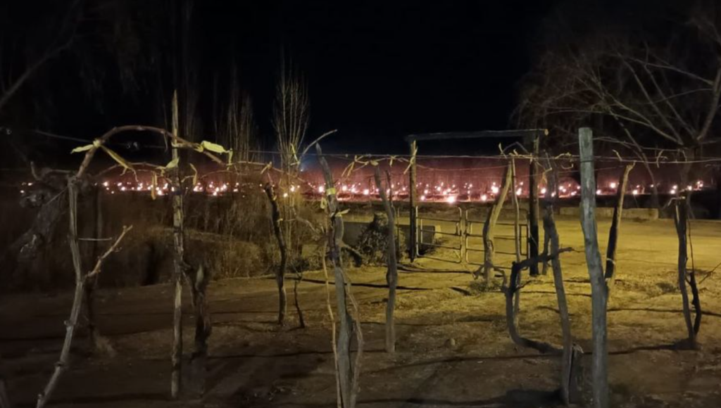 En las fincas, los productores aplicaron fuego para proteger y salvar los cultivos. Resta conocer en las próximas horas el reporte de los daños y las pérdidas en las zonas alcanzadas por esta helada tan larga, particularmente en vid y olivos.