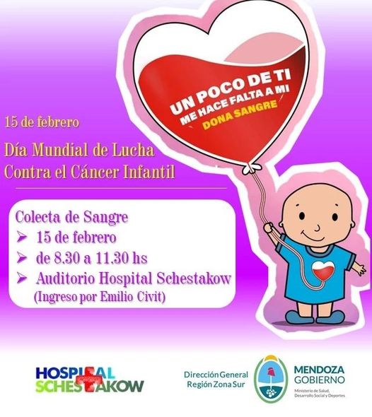Hoy 15 de febrero, es el Día Internacional del Cáncer Infantil. Debido a la importancia que tiene para salvar una vida, que podría ser la de cualquier niño, habrá una colecta de sangre, dialogó con FM Vos (94.5) y con Diario San Rafael la doctora Alejandra Galetto.