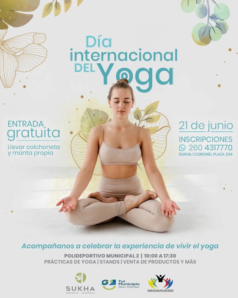 Este martes, a partir de las 10 y hasta las 18, desde Sukha Espacio Integral junto a la Dirección de Deportes del municipio, se preparan actividades en el Polideportivo Municipal 2, en celebración al Día Internacional del Yoga. Las actividades son gratuitas y para toda la comunidad, sumado a que no hace falta tener experiencia. Desde la organización piden llevar colchoneta y una manta. Además, habrá stands con venta de productos de alimentos saludables, cosmética natural, entre otras propuestas.