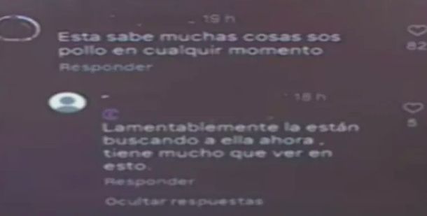«Lamentablemente la están buscando a ella ahora, tiene mucho que ver en esto«, le contestó otra persona al primer comentario, quizás en referencia al momento en que Lara Gutiérrez subía a una Chevrolet Tracker blanca en Ciudad Evita acompañada por Brenda del Castillo y Morena Verdi, que fueron asesinadas a golpes antes de que ella fuera sometida a una extensa tortura.