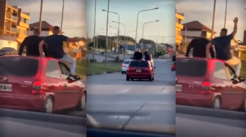 Un hecho similar ocurrió durante el pasado mes de diciembre en la ciudad de La Plata, donde tres jóvenes se subieron al techo de un Renault Kwid color gris y recorrieron seis cuadras a toda velocidad.