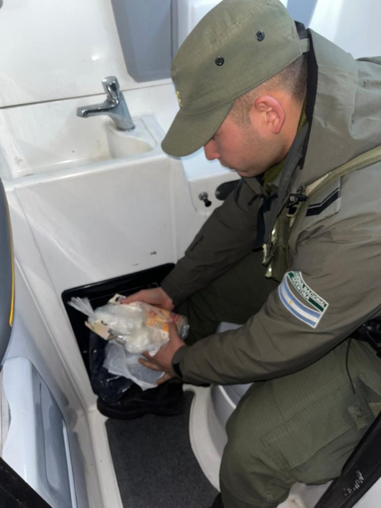 Un operativo de Gendarmería Nacional en el paraje El Sosneado terminó con un extraño decomiso: hallaron cocaína oculta en un envase de jugo vegetal a bordo de un colectivo de larga distancia.
