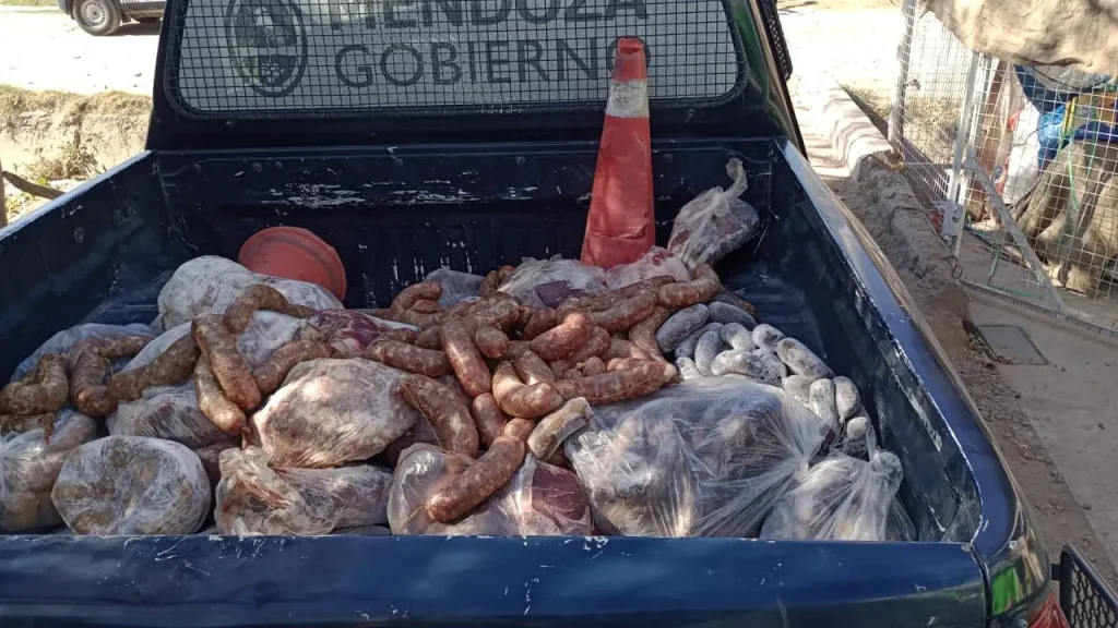 El primer procedimiento se realizó en un trozadero ubicado en Ruta 50 y calle 5 de Abril, donde se incautaron aproximadamente 70 kilos de embutidos y 30 kilos de achuras y grasa. La responsable del establecimiento, una mujer de 32 años, fue identificada y notificada conforme al artículo 201 del Código Penal.