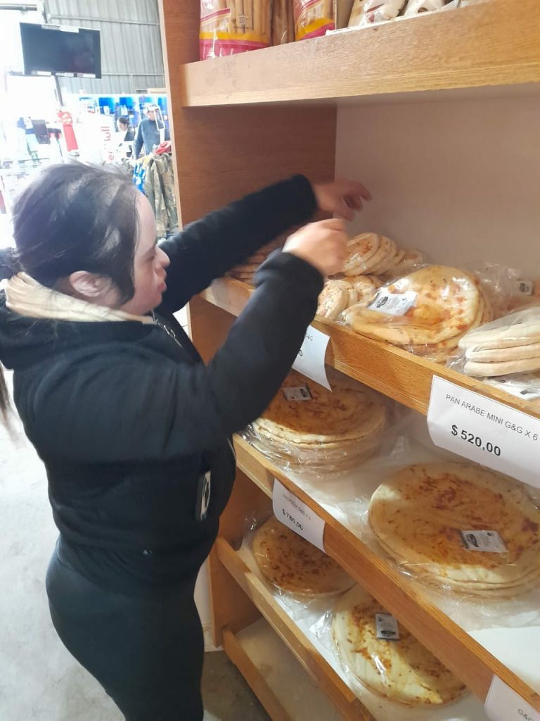 Jimena, una alumna de la Asociación Para la Rehabilitación Infantil Down (APRID), está trabajando en un comercio local, siendo la segunda persona que fue contratada este año en San Rafael. Ya que Alexis, alguien con su misma condición, lo hace desde hace más de un mes en un instituto médico.