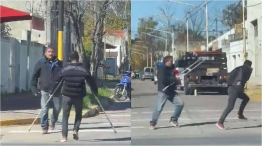 Un hombre con muletas pedía plata en un semáforo hasta que repentinamente comenzó a caminar sin dificultades al involucrarse en una pelea con un motociclista. La insólita escena quedó registrada por personas que transitaban por la zona y grabaron lo ocurrido.