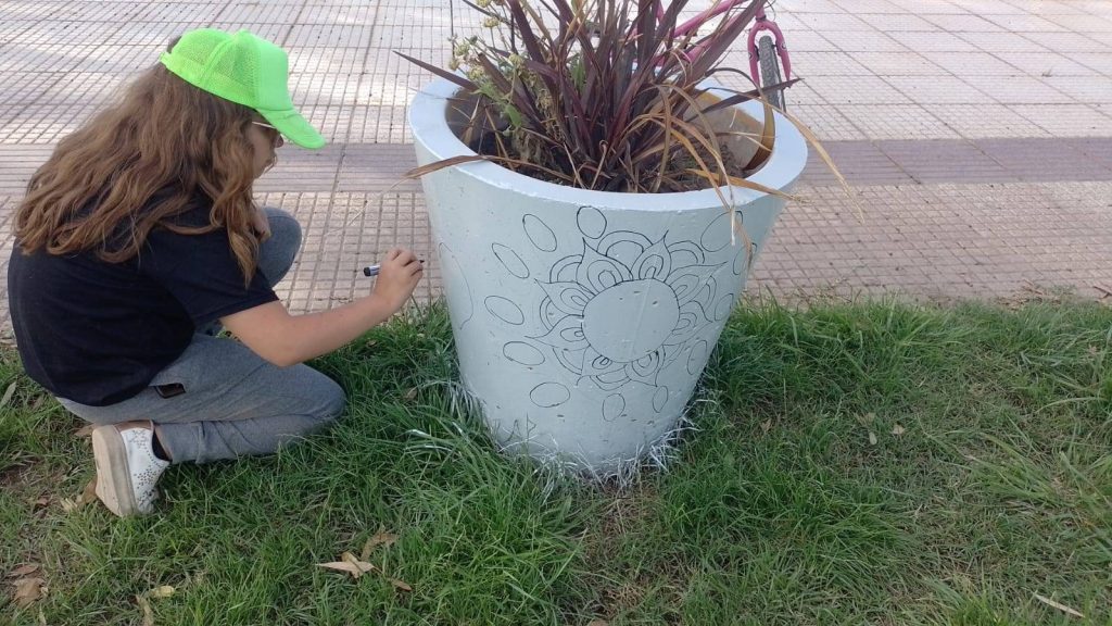 La intervención se realizó en los macetones del espacio denominado, pintándolos con diseños coloridos. La propuesta transforma el punto de encuentro en un lugar más alegre para toda la comunidad.