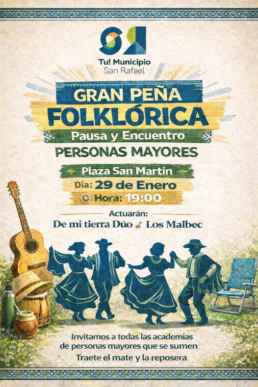 En el marco del programa municipal “Pausa y Encuentro”, desarrollado en conjunto por la Coordinación del Adulto Mayor y la Dirección de Relaciones con la Comunidad, se llevará a cabo una peña folclórica. Cristian Escudero, titular de la primera de estas áreas, adelantó detalles al respecto a través de FM Vos (94.5) y de Diario San Rafael.