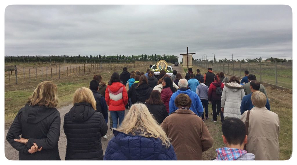 Hoy sábado, se realizará una procesión a las 16.30 desde la Champañera Bianchi, con el rezo del Santo Rosario, de cara a una posterior misa alrededor de las 17, junto a la ermita situada en calle Bianchi al 1500. Si bien debería hacerse el 18, porque es la fecha de inauguración del movimiento, se trata de una jornada laborable, por lo que la concurrencia sería muy inferior.